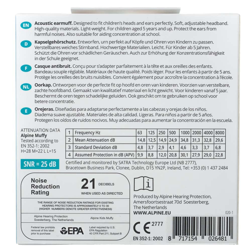Alpine Muffy Kids foi concebido para proteger a audição extremamente sensível de crianças dos 5 aos 16 anos contra ruídos prejudiciais. Os protetores auriculares podem ser usados em ambientes ruidosos, como festas, desfiles, espetáculos de fogos de artifício, concertos e corridas de automóveis e motociclos. Os pequenos protetores auriculares para crianças também proporcionam redução de ruído para melhorar a concentração, por exemplo, em salas de aula barulhentas. A faixa para a cabeça é ajustável e possui um forro macio. Os protetores auriculares Alpine Muffy Kids estão disponíveis em cinco novas cores modernas. A camada externa dos protetores auriculares coloridos é feita de plástico e, portanto, fácil de limpar. Os protetores auriculares podem ser dobrados, para que sejam fáceis de transportar. Faça com que o seu filho se sinta confortável e seguro.