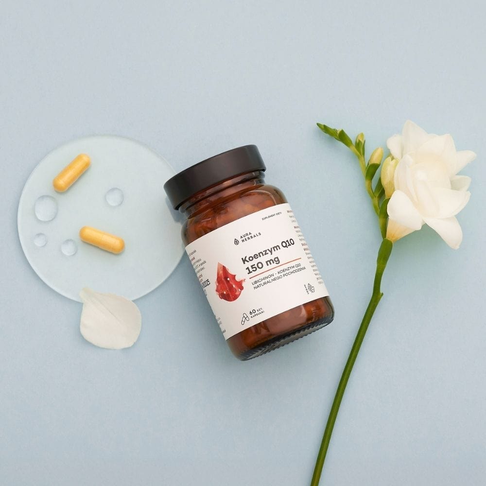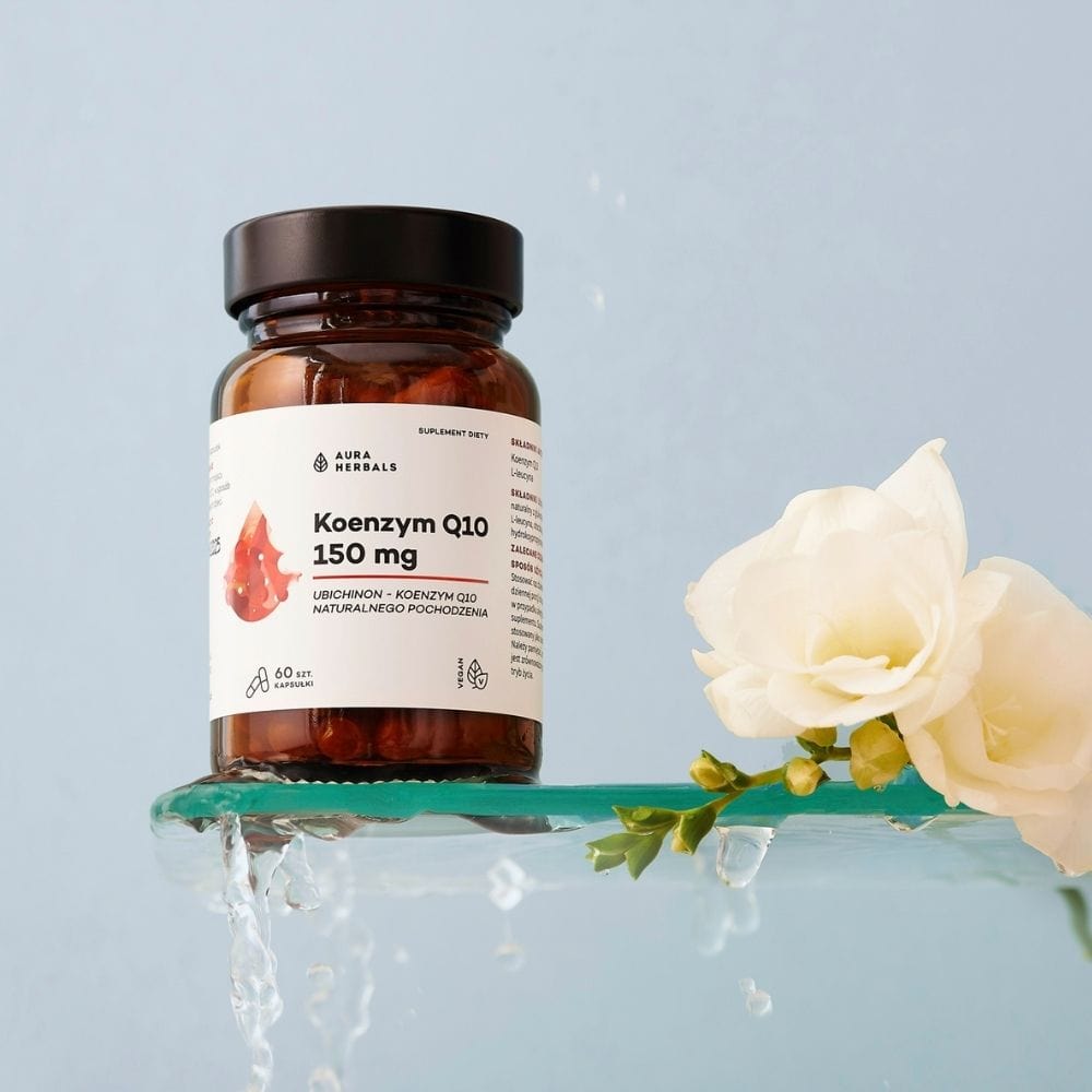 Aura Herbals Coenzima Q10 é um suplemento alimentar em cápsulas vegetais. Contém coenzima Q10 natural (ubiquinona) proveniente da glicose do milho. Cada cápsula fornece 150 mg de coenzima Q10.