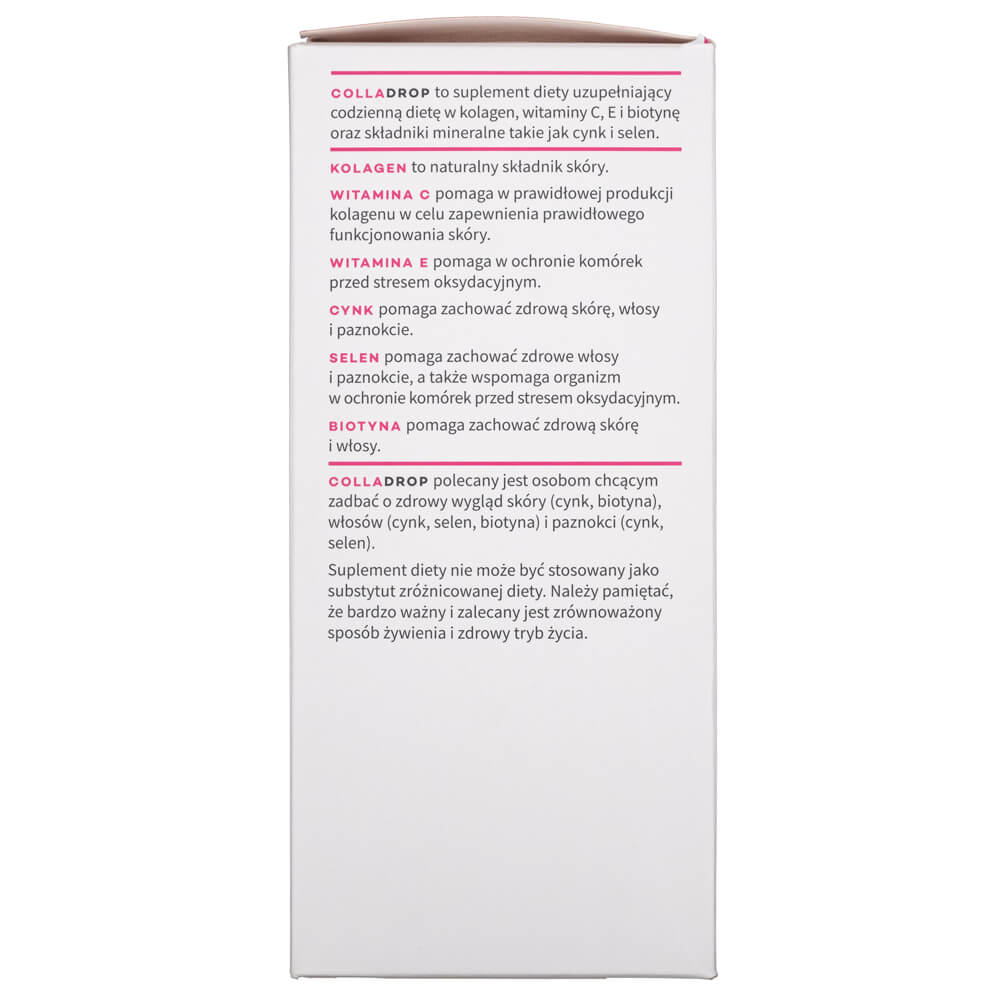 Água, NatiCol ® Colagénio da pele de peixe do mar, edulcorante: açúcar invertido, ácido L-ascórbico (vitamina C), gluconato de zinco, conservante: sorbato de potássio, D-alfa-tocoferol (vitamina E), selenito de sódio, D-biotina.