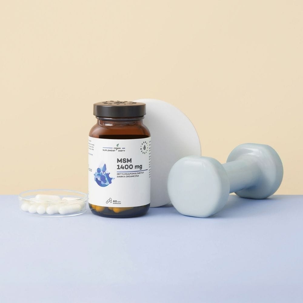 Aura Herbals MSM 1400 mg é um suplemento alimentar em cápsulas. Fonte de MSM - metilsulfonilmetano, , um composto orgânico natural de enxofre necessário para o bom funcionamento de muitos processos biológicos no organismo.
