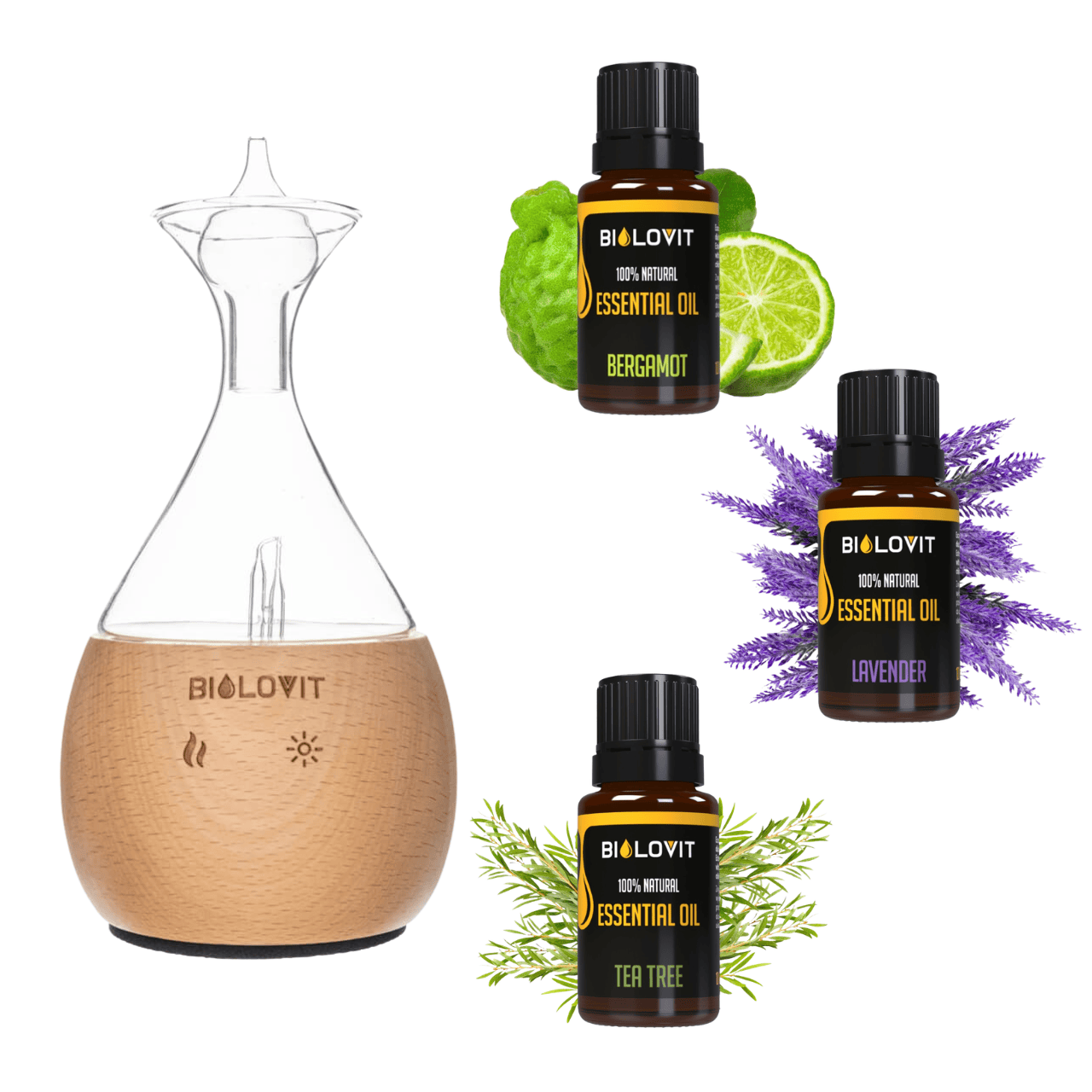 Conjunto de nebulizador de óleos essenciais Bilovit + 3 óleos essenciais