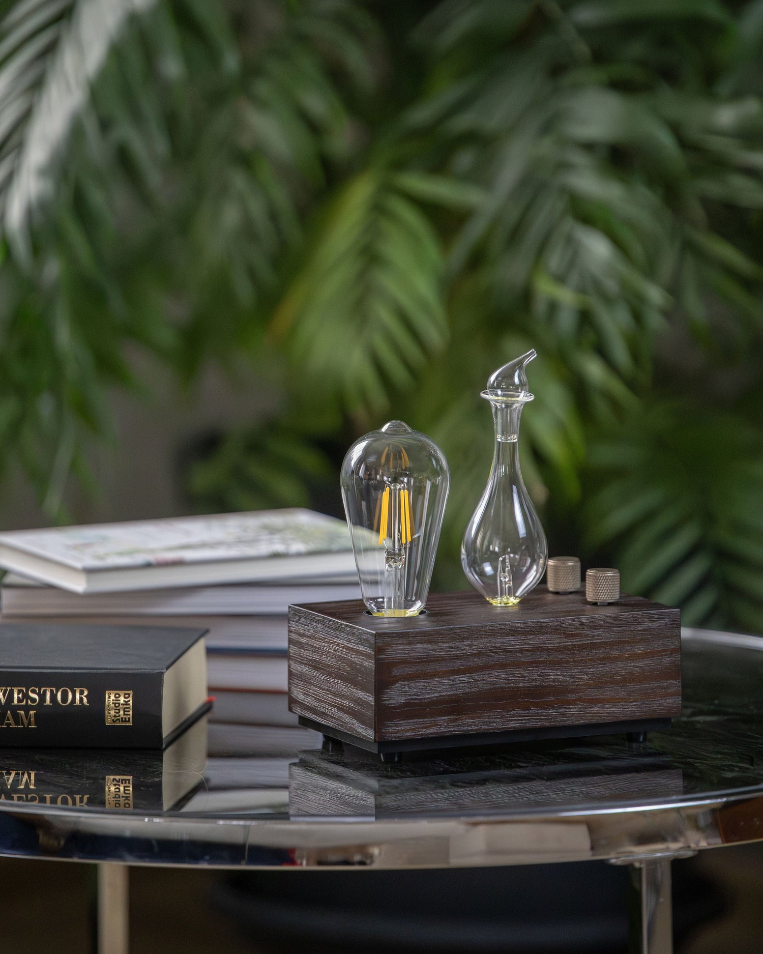 Traga uma atmosfera única para a sua casa com o nosso nebulizador de óleos essenciais com uma elegante lâmpada. É uma combinação de elegância e design moderno que complementará perfeitamente qualquer interior.