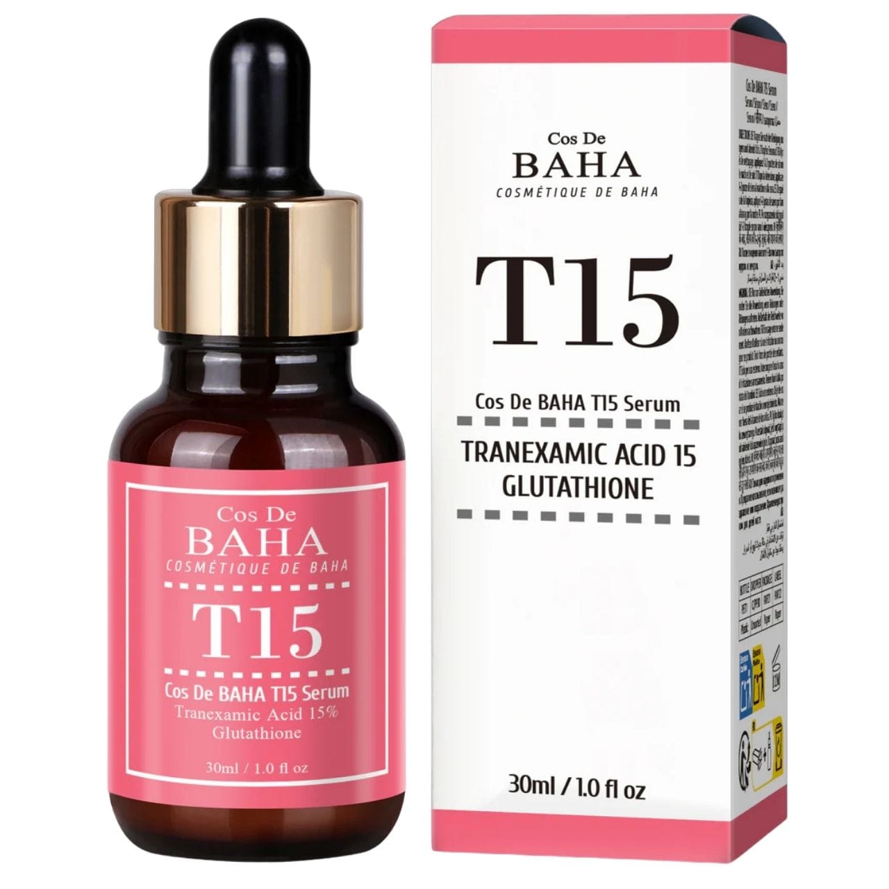 Cos De BAHA T15 é um sérum clareador avançado que atua contra a descoloração , manchas escuras e tom de pele irregular. A fórmula com alta concentração de ingredientes ativos atua em vários níveis — inibe a formação de novas manchas e clareia as existentes.