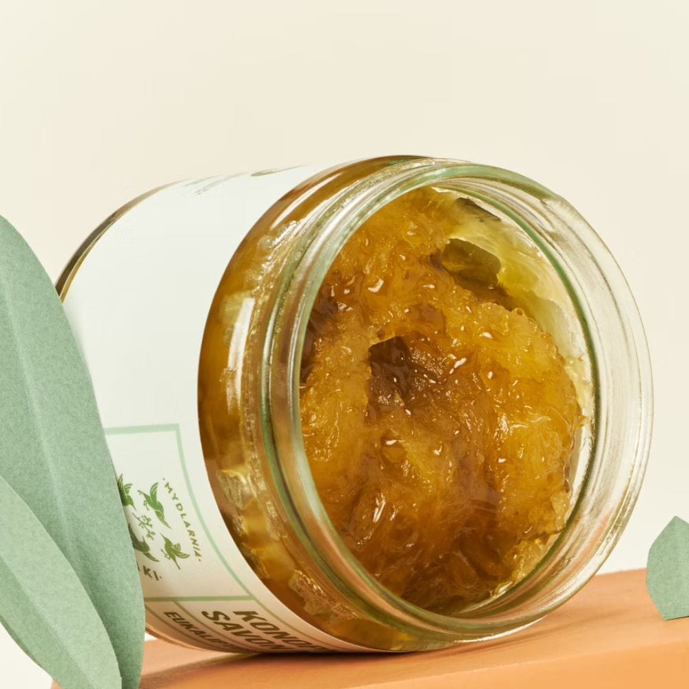 Transforme a sua hora do banho num ritual refrescante com o sabonete Savon Noir Eucalipto e Sálvia Cztery Szpaki . A mistura de óleo essencial de hortelã-pimenta e cevada verde do sabonete proporciona uma sensação refrescante, ao mesmo tempo que protege e nutre a sua pele com antioxidantes e vitaminas. Os óleos de coco e linhaça mantêm a pele hidratada, suave, e elástica, enquanto a manteiga de karité regenera e forma uma barreira protetora. A fórmula natural do sabonete é suave, mas eficaz, tornando-o a escolha ideal para uso diário.