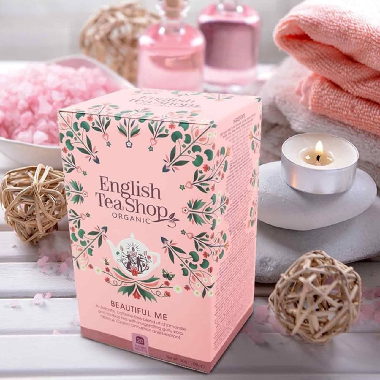 Sinta-se bonita por dentro e por fora! English Tea Shop Beautiful Me é uma mistura orgânica sem cafeína , que combina camomila suave com gotu kola purificante.
