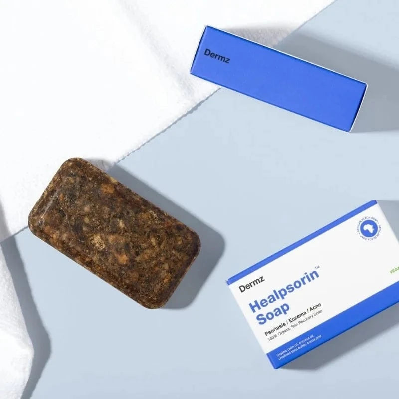 O sabão preto africano orgânico certificado COSMOS da Healpsorin vem diretamente do Gana e está repleto de antioxidantes, vitaminas e minerais que não só limpam e rejuvenescem a pele, mas também ajudam a restaurar o equilíbrio, combater infecções e hidratar profundamente.