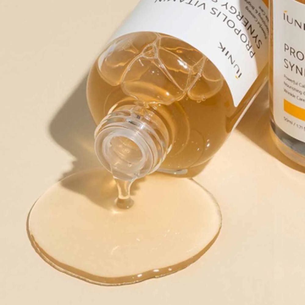 IUNIK O Sérum Sinergético de Própolis e Vitamina é um sérum fortalecedor inovador que utiliza os efeitos sinérgicos da própolis e dos extratos de espinheiro-marítimo. A fórmula contém altas concentrações de ingredientes ativos que cuidam de forma abrangente da condição da pele — desde o fortalecimento da barreira protetora até o clareamento e uniformização do tom da pele.