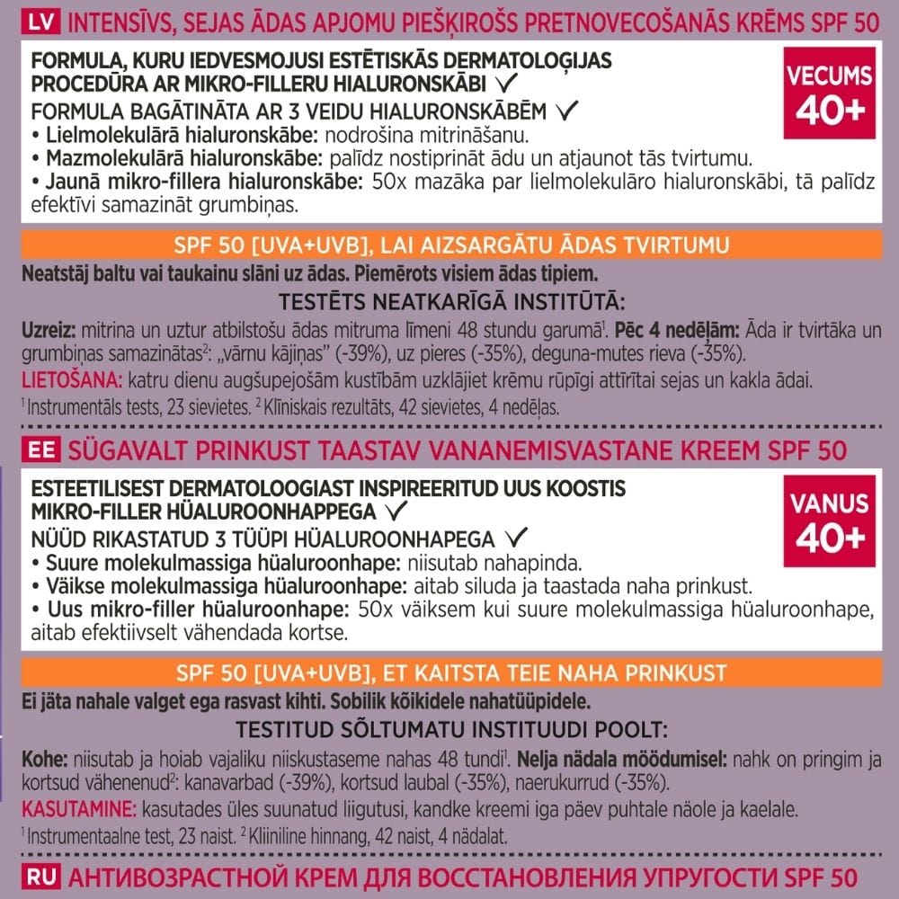 L'Oréal Paris Revitalift Filler Creme de Dia FPS 50 é um produto inovador criado em resposta às necessidades complexas da pele envelhecida. Os Laboratórios L'Oréal Paris, inspirados na tologia estética Derma, desenvolveram uma fórmula que não só combate eficazmente os sinais visíveis do envelhecimento, como também previne futuras alterações associadas ao fotoenvelhecimento.
