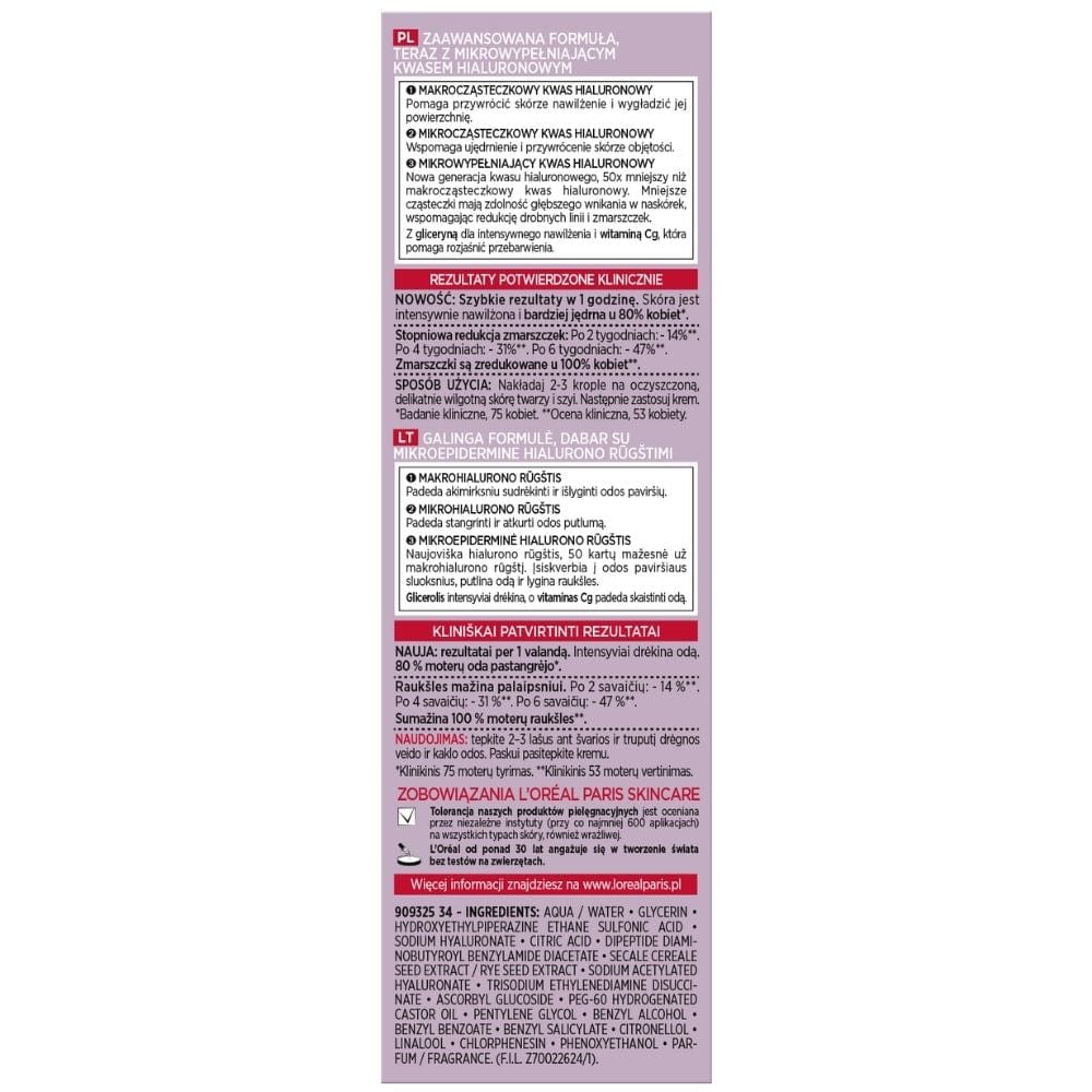 L'Oréal Paris Revitalift Filler Serum é um sérum facial concentrado que contém três tipos de ácido hialurónico. O produto hidrata intensamente a pele, suaviza as rugas e melhora a firmeza em apenas 1 hora após a aplicação. Dedicado a todos os tipos de pele, incluindo a pele sensível.