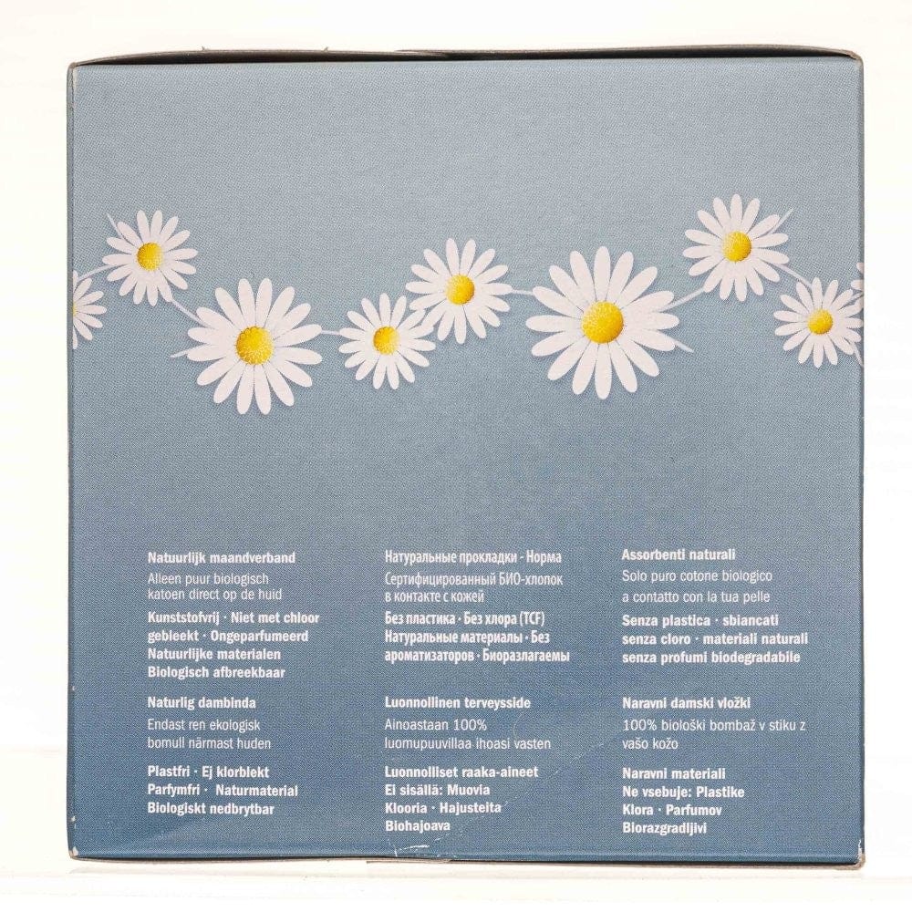Não contém plástico, cloro, seda artificial, látex, aditivos químicos, fragrâncias ou corantes. O núcleo de celulose orgânica e absorvente certificado bloqueia os fluidos menstruais para a manter seca, enquanto o algodão orgânico, macio permite que a pele respire.