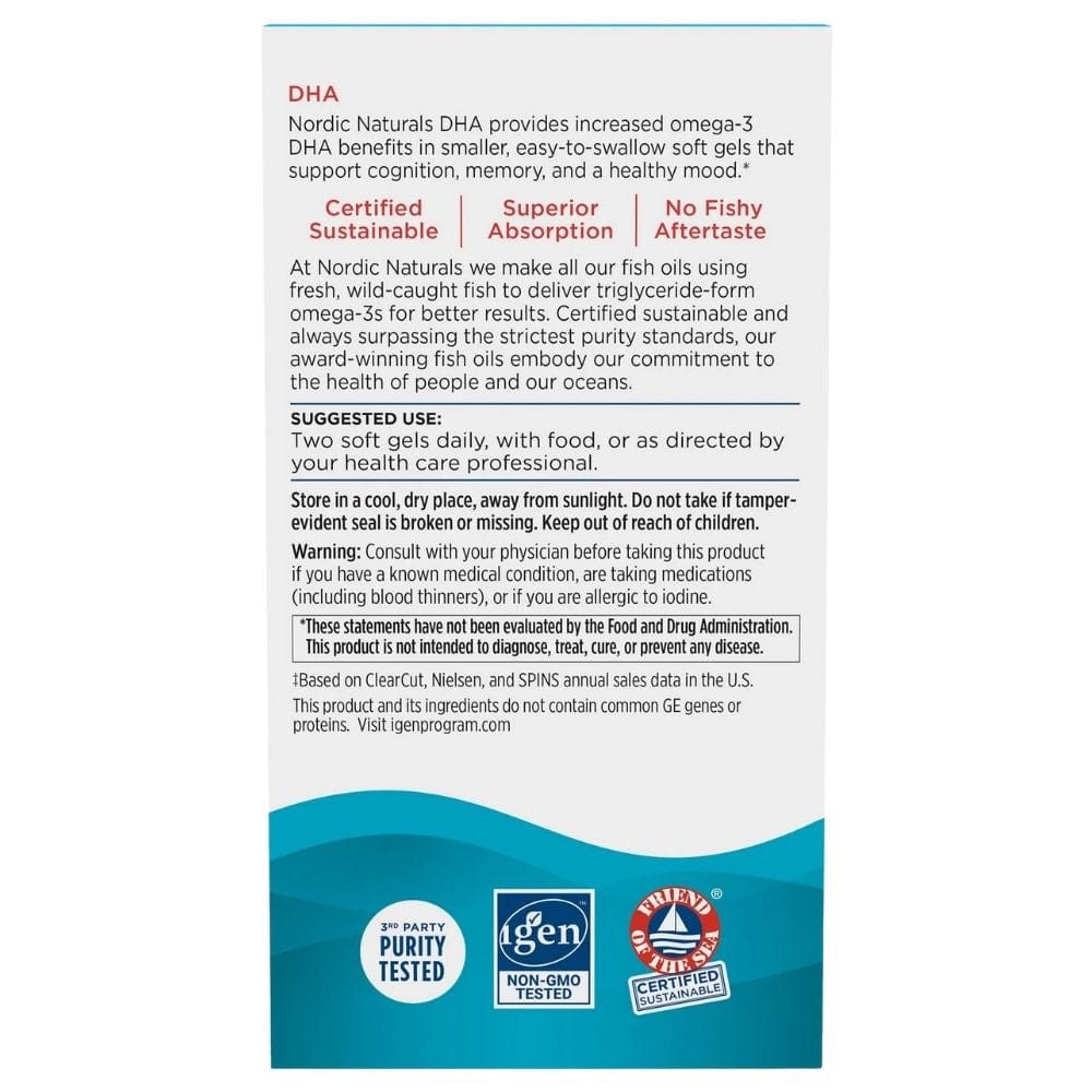 Nordic Naturals DHA é um suplemento alimentar em cápsulas de gel. A fórmula fornece 830 mg de ómega 3 , incluindo até 480 mg de DHA (ácido docosahexaenóico).