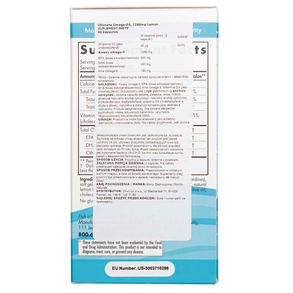 Nordic Naturals Ultimate Ómega-D3, Sabor a Limão 250 mg - 60 cápsulas moles