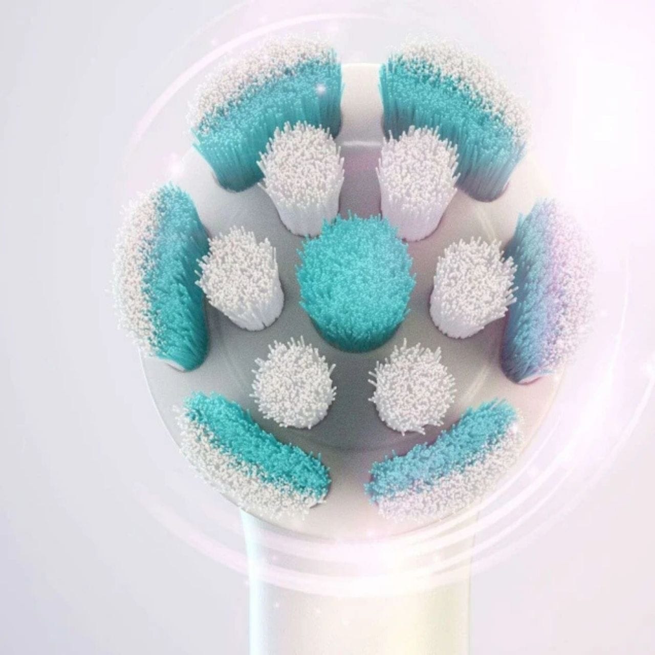 - Indicador de desgaste – as cerdas descoloridas sinalizam quando é hora de substituir a cabeça da escova.