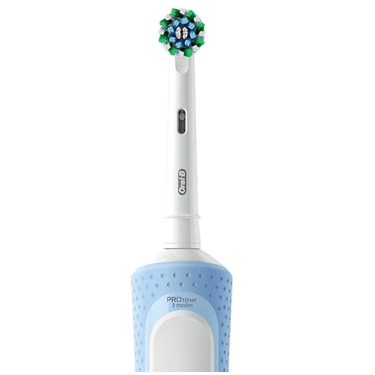 A cabeça redonda da escova Cross Action ,, concebida em colaboração com dentistas , , envolve completamente cada dente e alcança áreas de difícil acesso – espaços interdentais e linha da gengiva. As cerdas de comprimentos variados não só limpam eficazmente ,, como também massageiam suavemente as gengivas ,, melhorando a sua circulação sanguínea. O temporizador incorporado com um sinal a cada 30 segundos garante que nenhuma área da boca é esquecida.