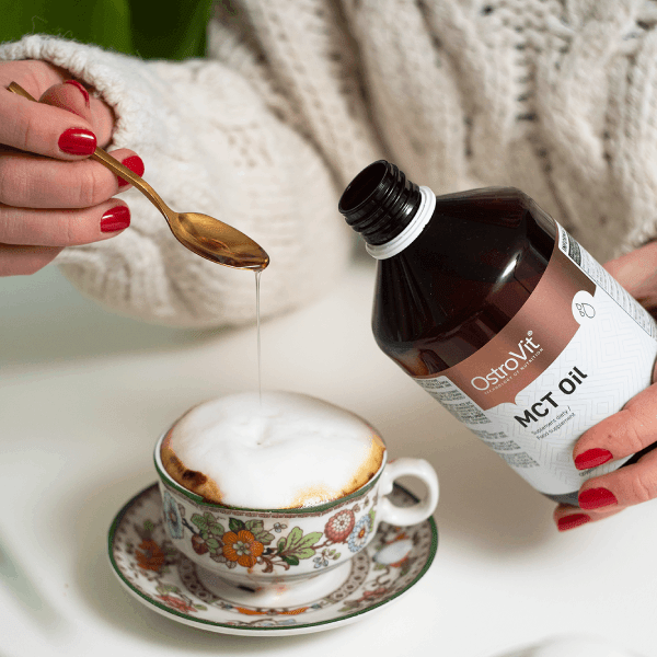 Ostrovit MCT O óleonada mais é do que ácidos gordos de cadeia média de alta qualidade MCT (triglicéridos de cadeia média), encerrado desta vez numa garrafa PET plástica, não quebrável sem BPA (bisfenol A) . Os ácidos gordos de cadeia média são especialmente recomendados para atletas e pessoas com actividade física aumentada.