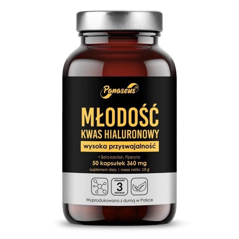 O suplemento Youth da Panaseus é uma combinação de ácido hialurónico com ingredientes activos adicionais. O ácido hialurónico é uma substância que se encontra naturalmente na pele, olhos e nas articulações. A sua principal função é reter água nas células do corpo, e é por isso que é um dos mais importantes blocos de construção do líquido sinovial e da cartilagem vítrea.