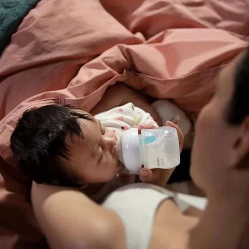 - Durante a alimentação, mantenha o biberão na posição vertical para que a válvula AirFree funcione corretamente e mantenha a tetina cheia de leite.