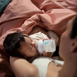 A tetina larga, macia e flexível foi concebida para imitar a forma e a textura do seio materno. Isto facilita a pega do bebé e permite-lhe beber ao seu próprio ritmo, o que facilita significativamente a combinação da amamentação com a alimentação com biberão.