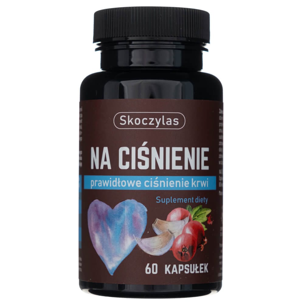 O suplemento dietético Na Ciśnienie marca Skoczylas contém potássio, que ajuda a manter a pressão arterial normal. Hawthorn, que apoia a função do coração e do sistema cardiovascular. Aronia e alho, que têm propriedades antioxidantes.