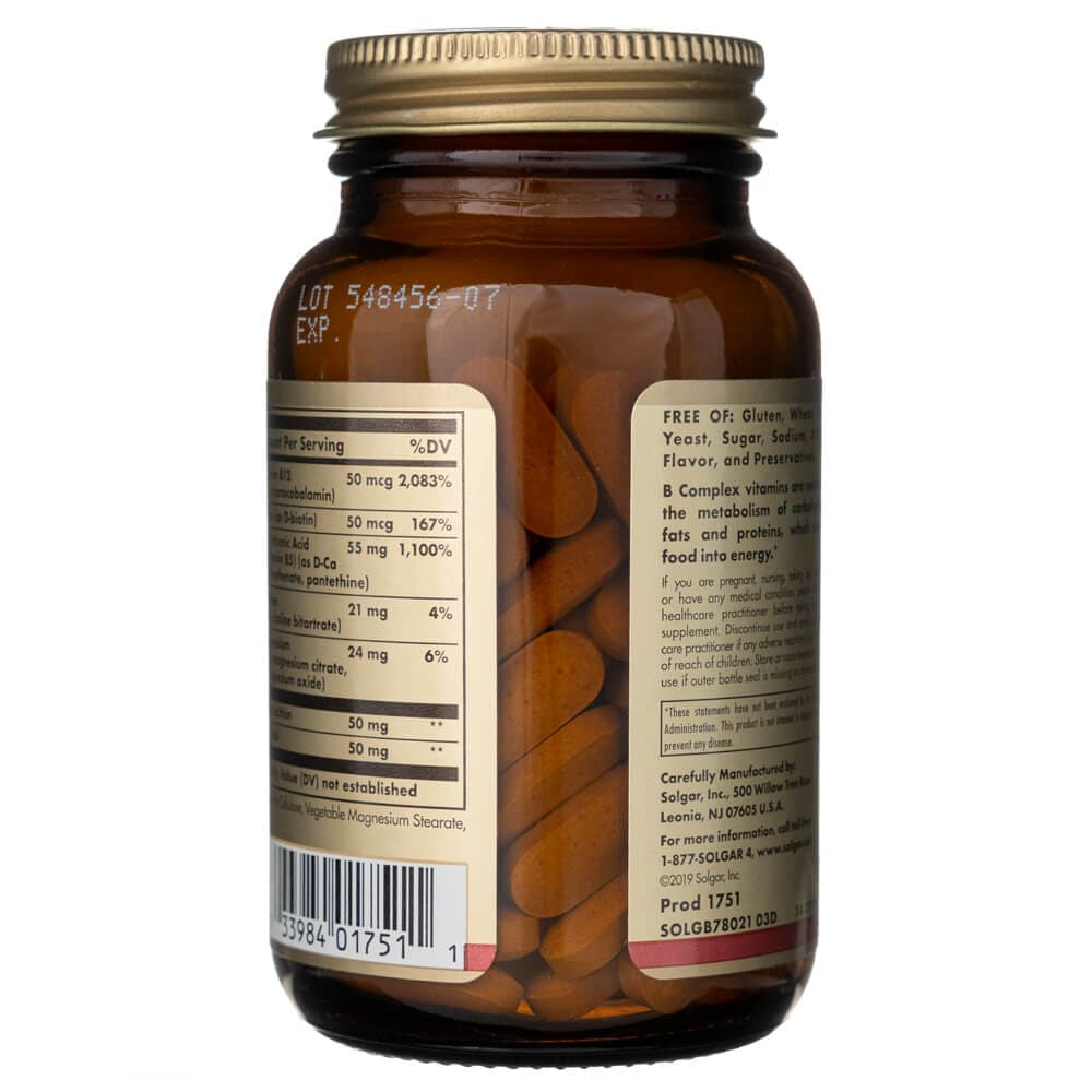 Cada nutriente necessário no Complexo de Vitaminas B desempenha um papel único na manutenção de um funcionamento metabólico adequado, enquanto apoia nutricionalmente o corpo durante o stress ocasional da vida diária. As vitaminas do Complexo B apoiam o metabolismo dos nutrientes. Esta fórmula fornece adicionalmente algumas vitaminas da coenzima B num estado pronto para o corpo. As vitaminas do complexo B ajudam no metabolismo dos hidratos de carbono, gorduras e proteínas para apoiar a produção de energia celular para o corpo.