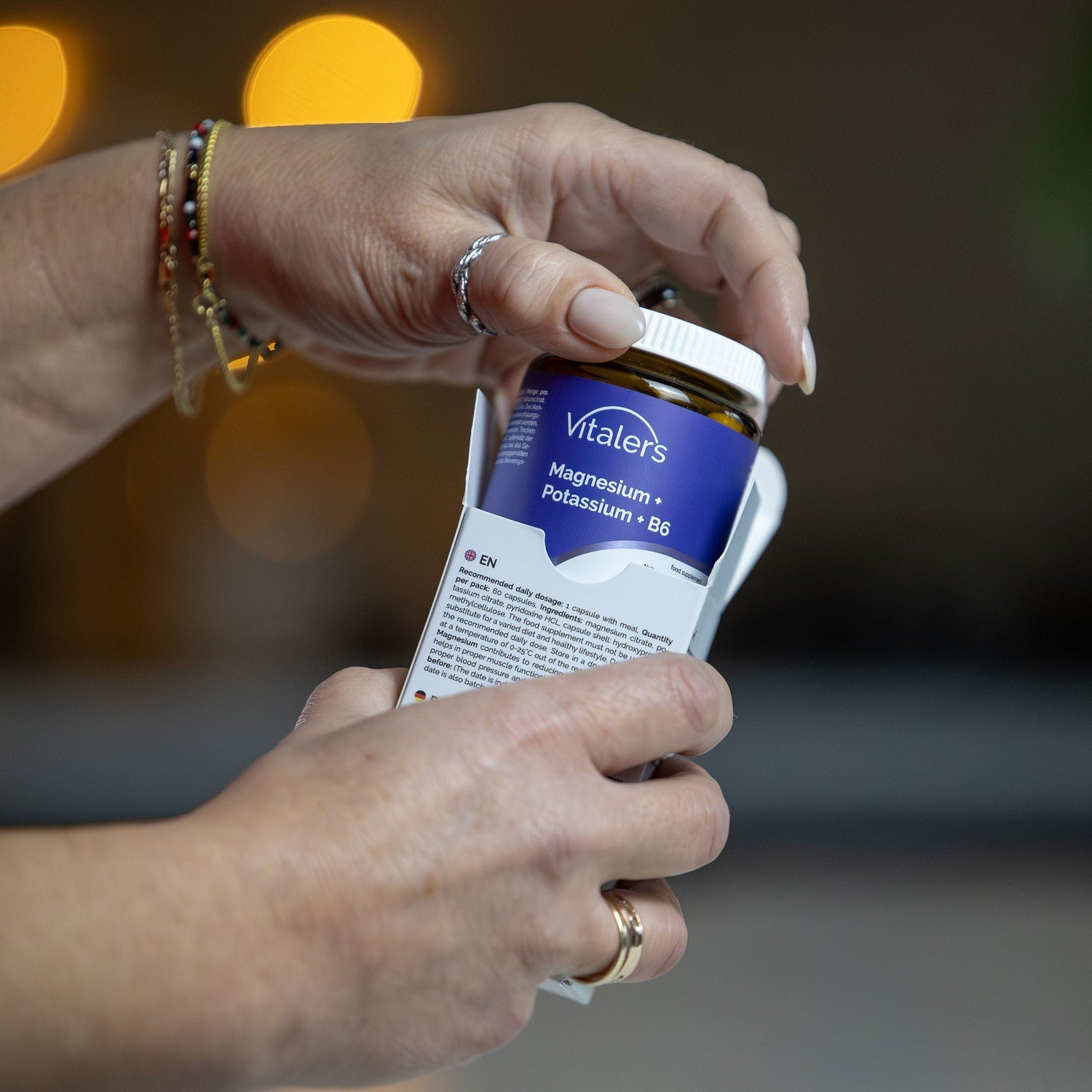 Vitaler's Magnésio + Potássio + B6 é um suplemento alimentar em cápsulas. Um complexo de potássio e magnésio na forma de citratos com adição de vitamina B6.