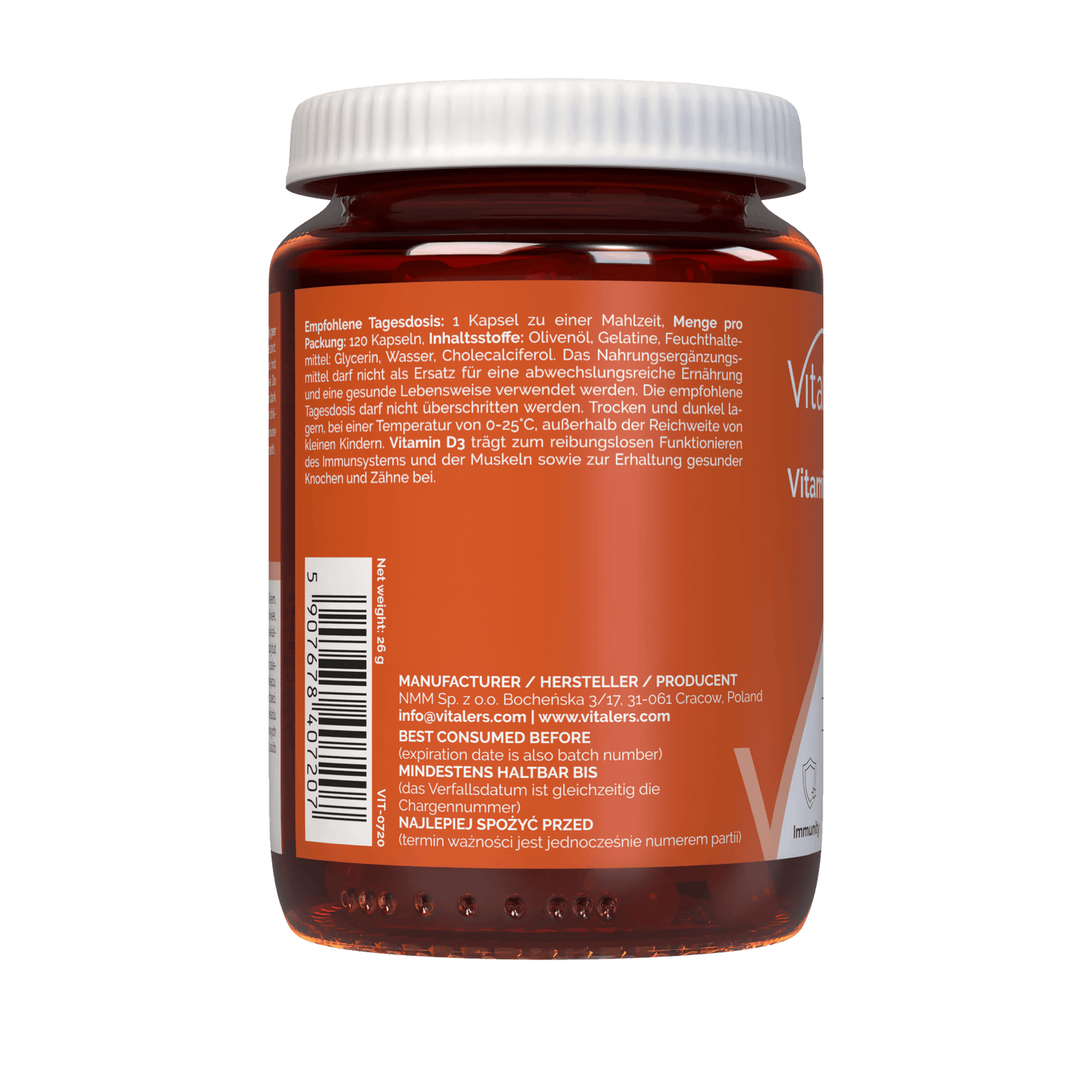 Vitaler's Vitamina D3 4000 UI - 120 Cápsulas de Gel