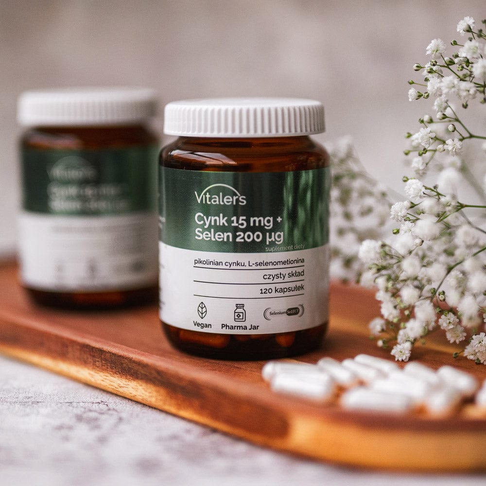 Vitaler's Zinco + Selénio é um suplemento alimentar em cápsulas que contém zinco na forma de picolinato de zinco e selénio na forma de L-selenometionina.